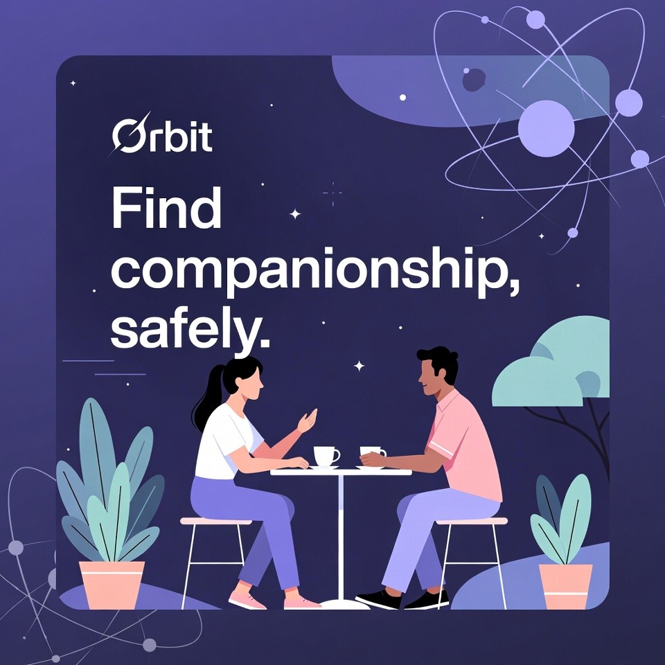 Orbit is a mobile app for finding trusted, platonic companions — coffee, walks, or group activities.